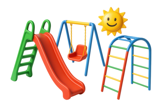 Colorful Plastic Playground Playset on Green Mat  isolated on transparent background