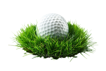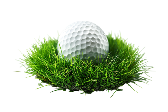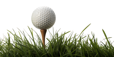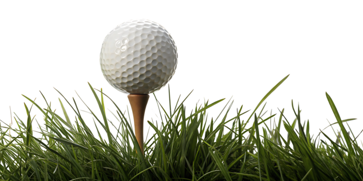 A golf ball on a tee in the grass isolated on white background PNG.AI GENERATED
