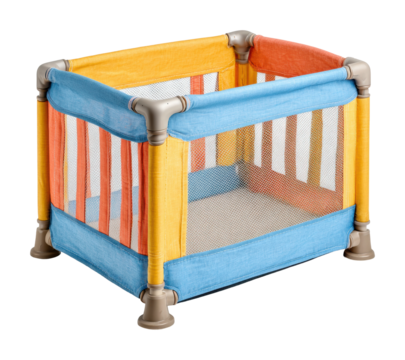 Infant playpen designed for portability, suitable for indoor and outdoor use, providing a safe environment for babies to explore and play, sturdy and lightweight, isolated on transparent background