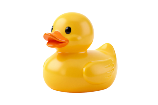 Yellow rubber duck floating, symbolizing childhood playtime and bathtime joy against clean transparent backdrop