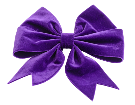 A plush, deep purple velvet bow against a black backdrop, well-lit and isolated