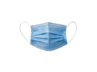 Blue pleated surgical mask with white ear loops medical, Isolated, Png Transparent Background