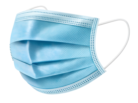 Blue disposable medical face mask isolated on transparent background
