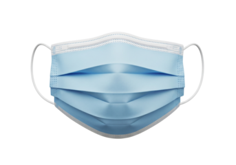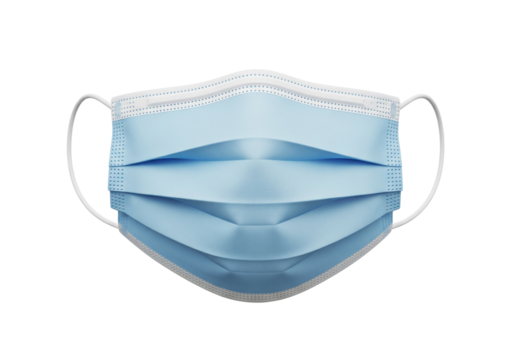 Light Blue Disposable Surgical Face Mask Isolated on White Background. Essential Personal Protective Equipment (PPE) for Healthcare, Virus Protection, and Air Quality Safety.