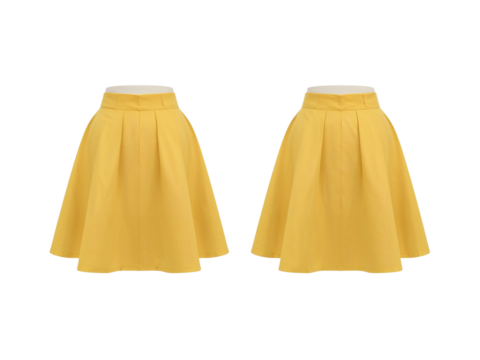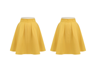 Pair of stylish yellow pleated skirts isolated on transparent background studio shot