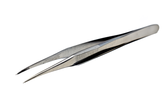 Gleaming Stainless Steel: A Close-Up of Precision Tweezers Against a Stark Black Backdrop, Perfect for Medical, Scientific, or Cosmetic Applications.
