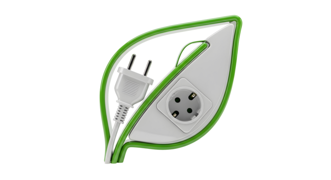 Collection of plug connected to a miniature solar panel representing clean electricity. full length isolate on transparent background