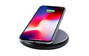 An iPhone plugged into a charging station to power up