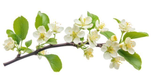 Blooming plum tree flowers on white background