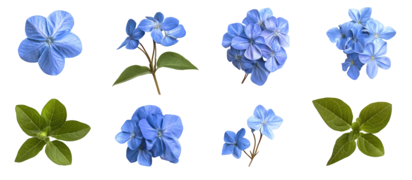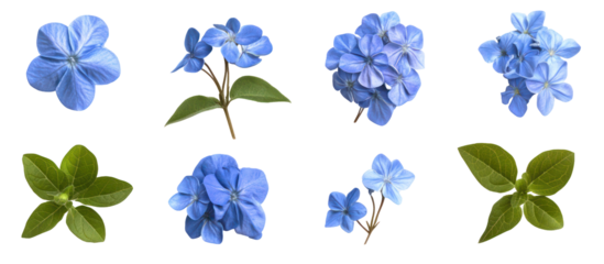 Set of Plumbago auriculata the Cape leadwort blue plumbago ornamental flowering plant isolated on transparent background