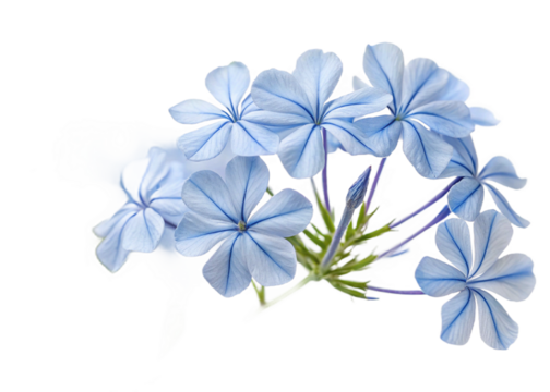 Light blue plumbago blossoms floating against transparent backdrop, perfect for seamless graphic design integration