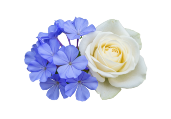 Delicate Arrangement of Blue Plumbago and Creamy White Rose Blossoms