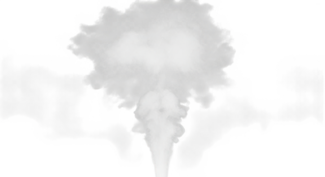 Three smoke pillar float ominously with thick plume rising into transparency background