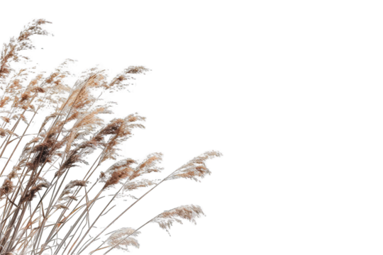 Tall fluffy pampas grass plumes with feathery texture, an ornamental herb suitable for decoration, isolated on transparent background