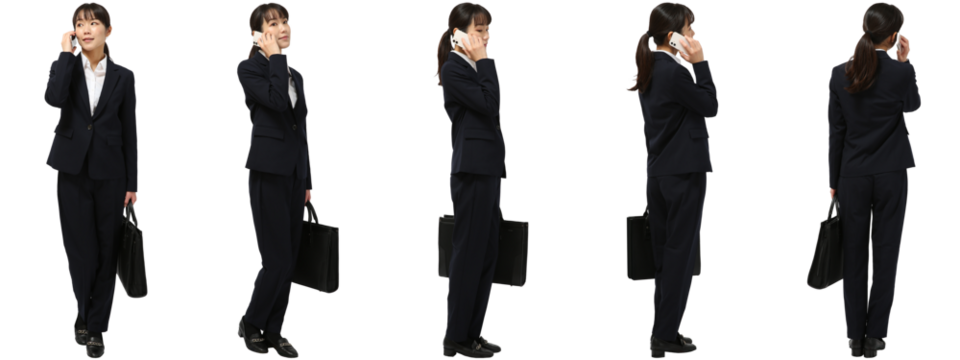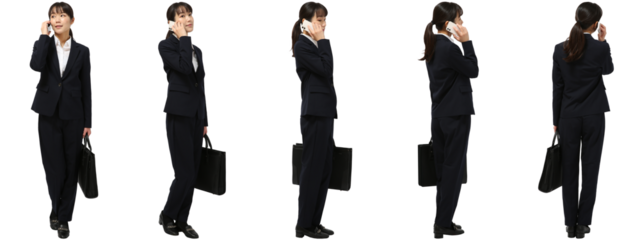 ナチュラルカラーの衣装を着たミドル女性グループ 手作業で精密に切り抜いた背景透過全身写真PNG