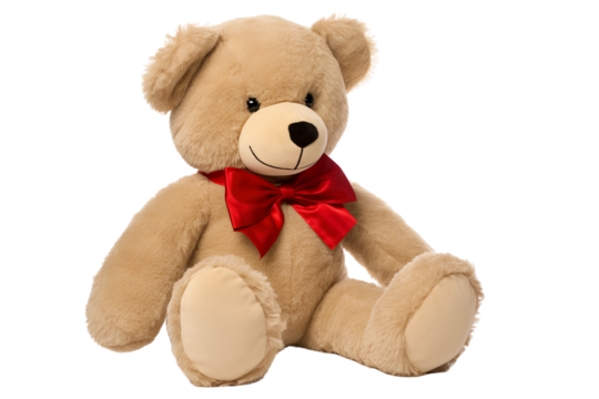 A charming, plush bunny toy sits upright, showcasing its floppy ears and gentle expression isolated on transparent background