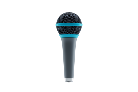 Stylized grayscale handheld microphone on transparent background
