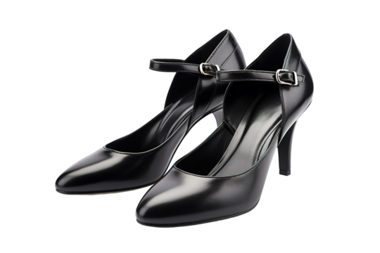 Elegant Black High Heels Displayed Elegantly on a White Background in a Fashion Setting on Transparent PNG Background.