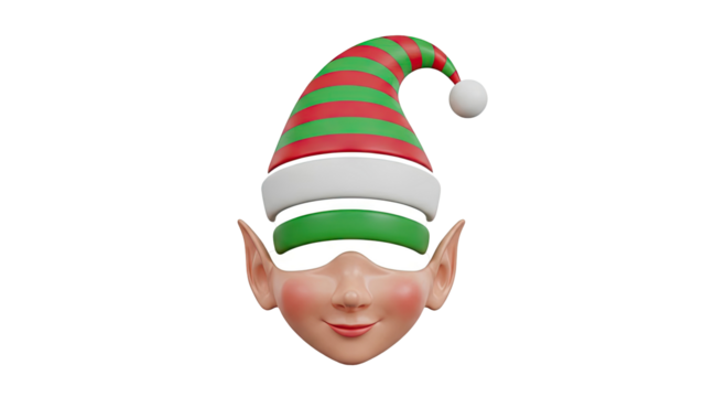 3D Render of an Elf Face with a Red and Green Striped Hat