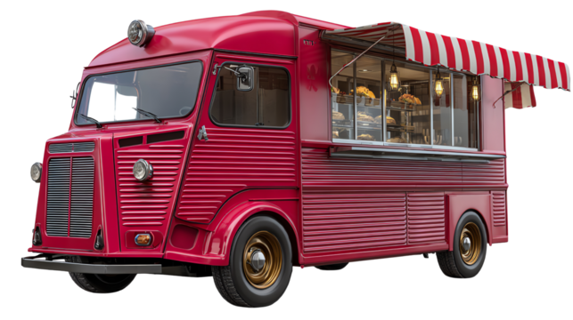 Red Food Truck Delights: A vibrant red food truck, a beacon of culinary adventure, stands poised to serve, its awning casting a welcoming shade.