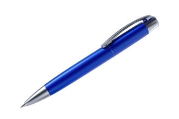 A sleek blue pen poised elegantly against a white background, symbolizing creativity and professionalism in business settings.