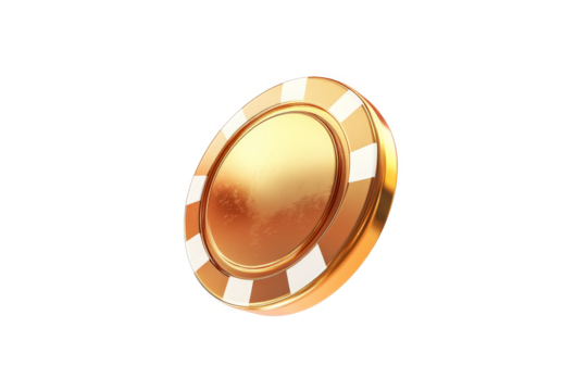 a gold poker chip chip cutout image and isolated on transparent background