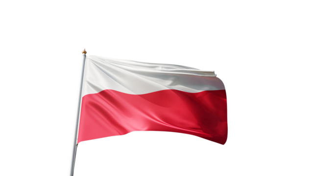 Flag of poland with no background, transparent png, flag on a flag pole waving in the wind, national symbol of poland country in europe, picture of a flag