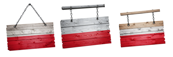 Poland Wooden Hanging Flag Sign On Isolated Transparent Background