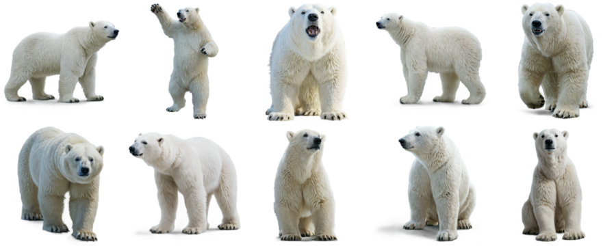Modern Polar Bears Isolated on Transparent Background, Ideal for Art Projects