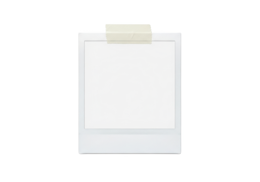 Minimalist polaroid-style frame with gold thumbtack, transparent background