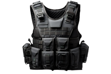 A Black Tactical Vest Ready For Action on a Clear PNG or White Background.