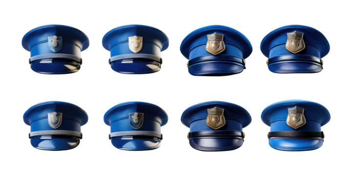 Collection of Blue Police Hats on White Background, PNG collection, set bundle, isolate on transparent or white background