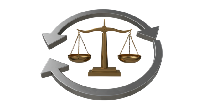 Isolated Justice Balance Surrounded by Recycling Arrows