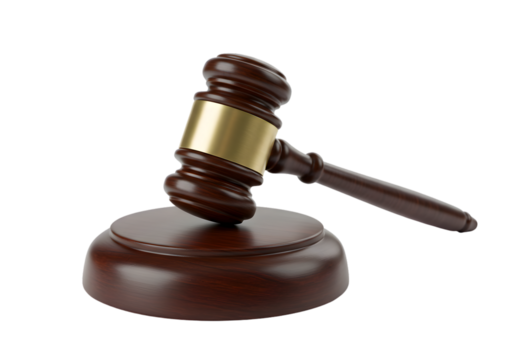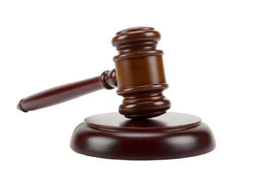 Brown Wooden Gavel on Sound Block Isolated on Transparent Background