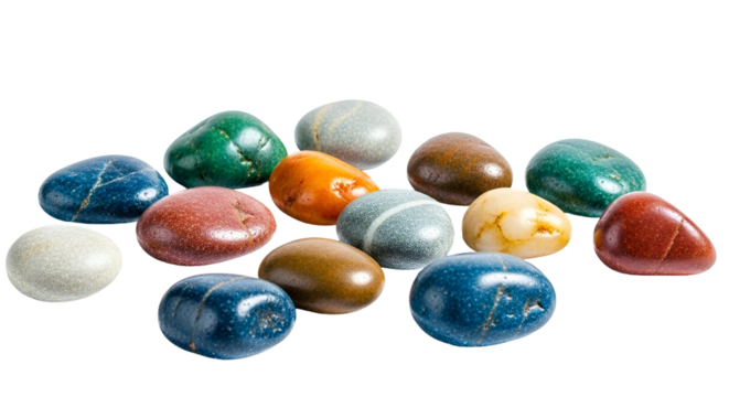 Set of opals with vibrant color patterns and polished surfaces, isolated on white, cut out