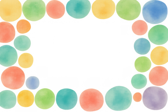 Watercolor polka dot frame creating a colorful border, drawing attention to central copy space on transparent background