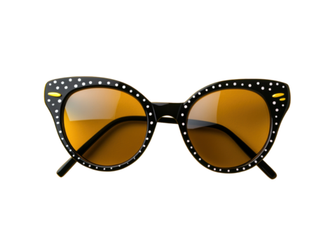 Stylish black cat-eye sunglasses with polka dots for sunny days on a transparent background, cut out