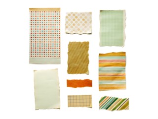 Torn old paper stripe featuring dotted pattern in beige color, vintage texture with ripped edges, transparent background