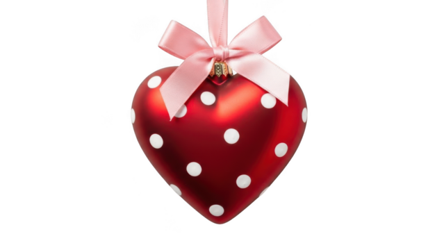 Red heart with polka dots and bow, transparent romantic gift idea