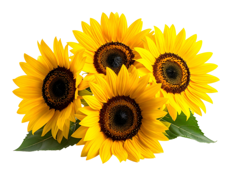 A cluster of white daisies with yellow centers bloom vibrantly in lush green grass under bright sunlight isolated on transparent background