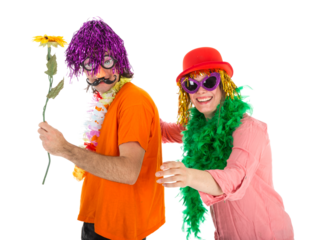 Man and Woman dressed in carnival costumes dancing a polonaise isolated on transparent background