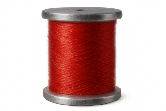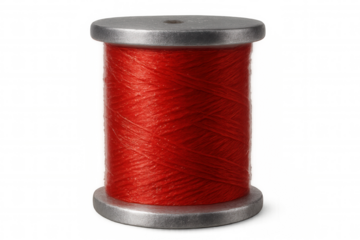 Red spool of thread isolated on transparent background, perfect for sewing, tailoring, and embroidery