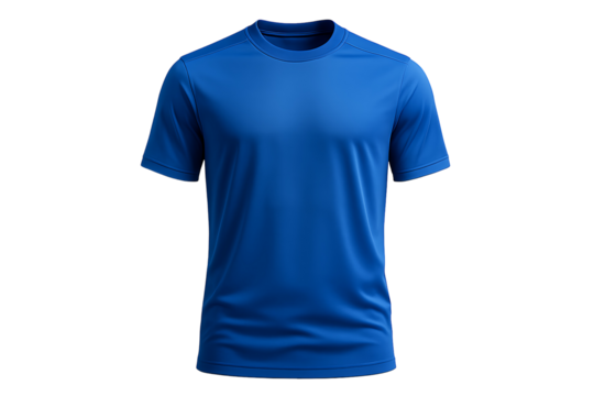 Blue athletic t-shirt with crew neck and short sleeves for sports training or gym workout and casual summer wear isolated on transparent background
