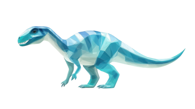 Colorful geometric dinosaur illustration featuring a blue and white design