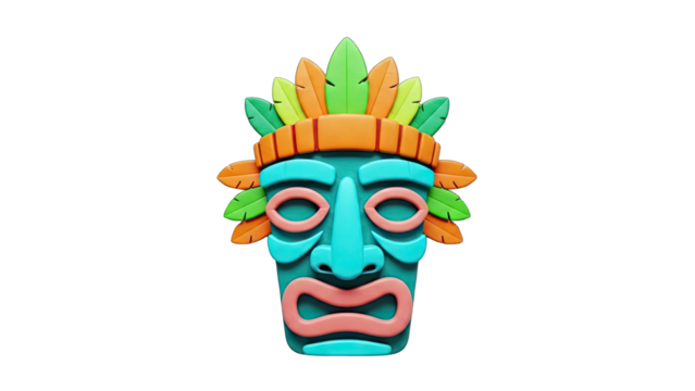 Colorful Tiki Mask with Feathers on White Background