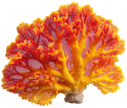 Detailed macro shot of a colorful sea coral polyp isolated on transparent background
