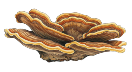 Detailed illustration of brown bracket mushroom on white background
