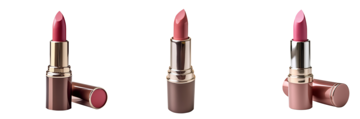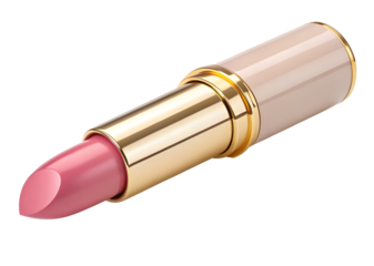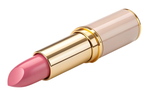 A red lipstick in a gold case, against a white background, high-resolution product photography, front view.