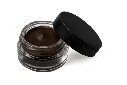 Isolated eyebrow pomade with brush applicators used in beauty makeup products, still life
