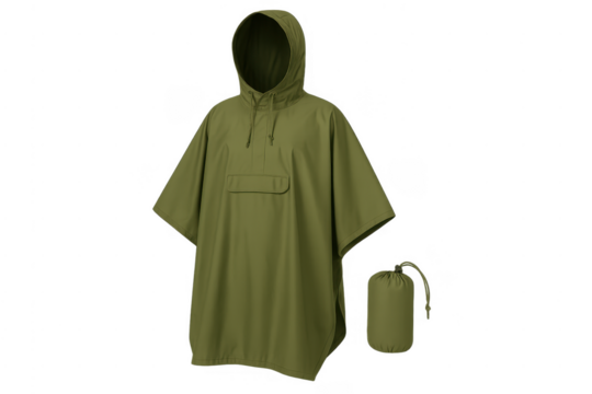 Lightweight rain poncho folded background isolated on a Transparent background, PNG file.